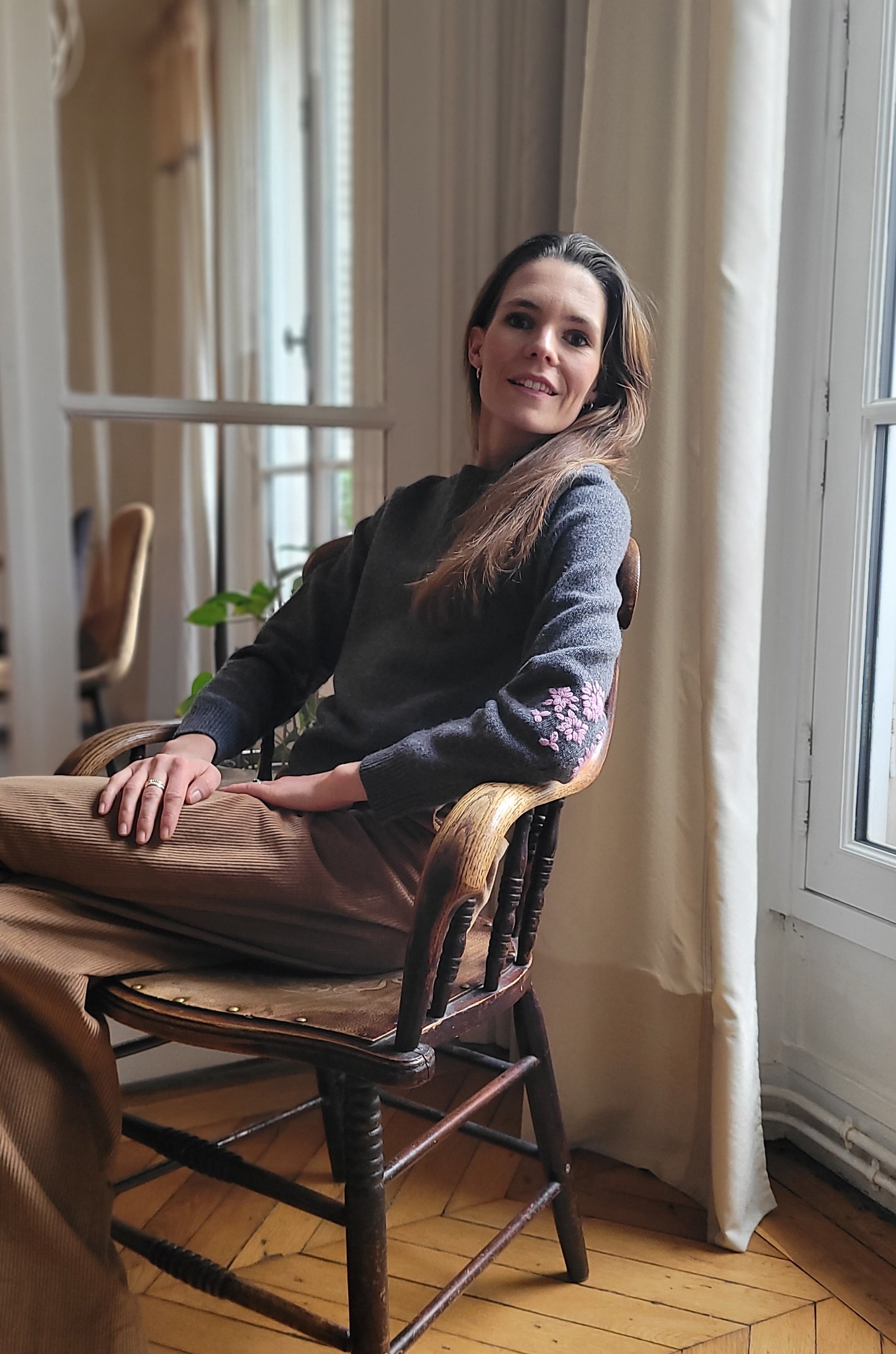Beau pull brodé Louison