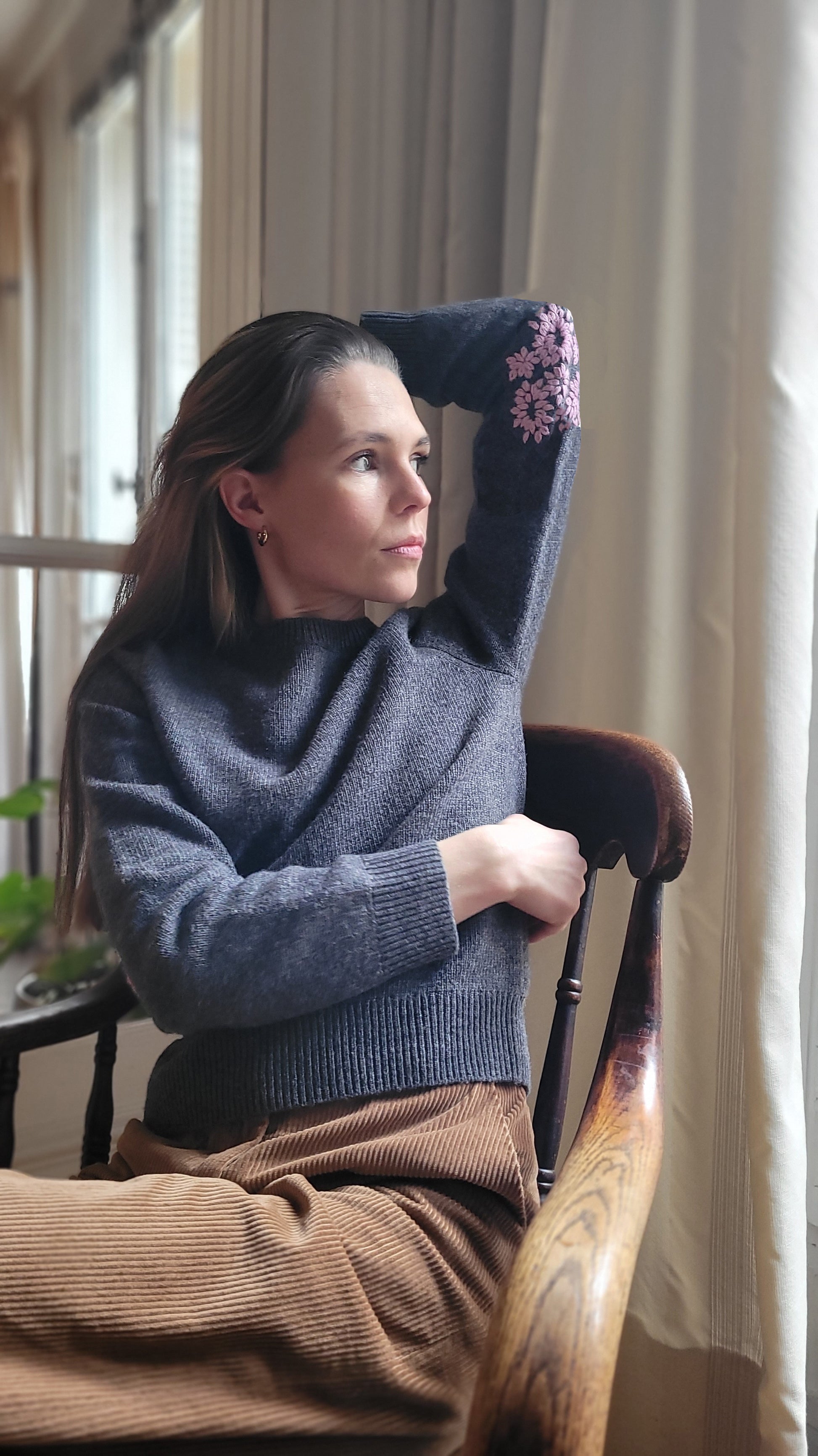 Les broderies à la main, délicatement placées sur les coudes, apportent une touche subtile et singulière, pour celles qui aiment les détails qui font la différence.